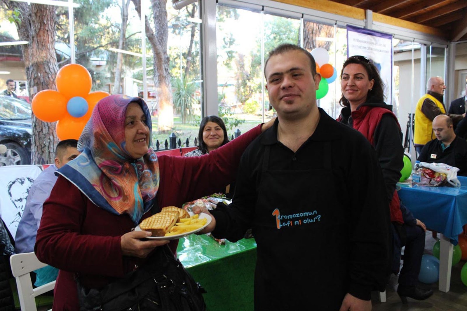 Ege Üniversitesi ile de ortak bir çalışmamız var. Down Cafe devam ettikçe hem çocuklarımıza hem bizlere eğitimler düzenliyor. Ege Üniversitesi Engelli Çocuklar Rehabilitasyon Merkezi bize bu konuda çok yardımcı oluyor. Birçok daldan saygıdeğer hocalarımız çocuklarımıza birçok dalda konservatuvar eğitimi verdiler.